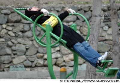 Shirzanan - Elham Abbasi & Haniyeh Akbary: For some time now there has been talks about morning exercises in various Boustans (garden parks) in Qom (Iran`s most fundamental city); there were some posters distributed along the city; Qom is considered to be a holy city in Shi`a Islam and it is the largest center for Shi’a scholarship in the world. It was interesting for s since two of these garden parks were specifically organized for women only, and the thought of morning exercises for women excited us. So finally we paid a visit to these parks: only one of them had the morning sport going on for women, Nargess Boustan. Nargess Boustan is covered with high fences so nothing can be visible from outside of the parks boundaries: because of the fences we naturally thought that inside the park there would be no Hijab required.